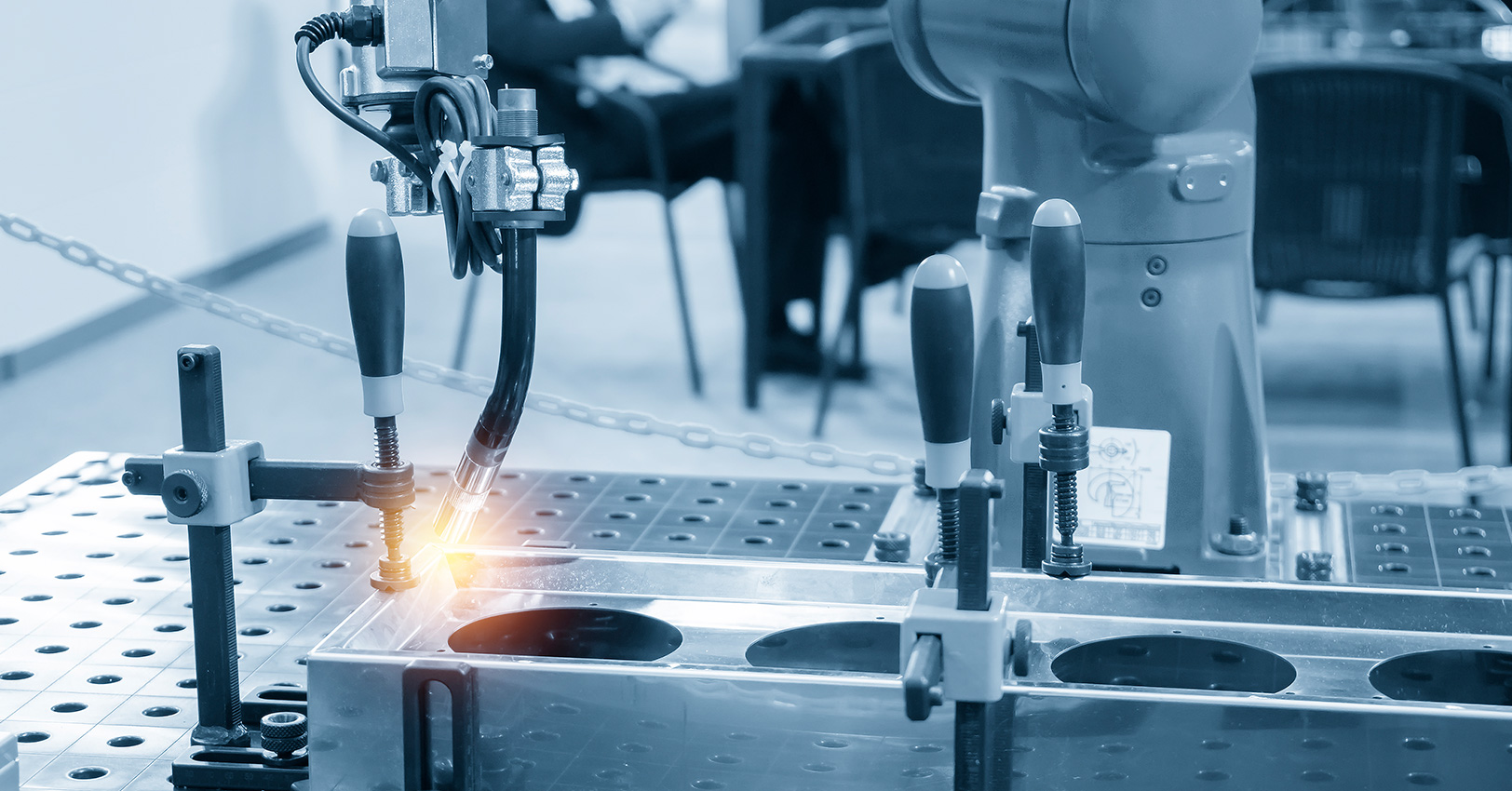 金屬成形機(jī)床是機(jī)床工具的重要組成部分,成形加工通常與高勞動強(qiáng)度,噪音污染,金屬粉塵等聯(lián)系在一起,有時處于高溫高濕甚至有污染的環(huán)境中,工作簡單枯燥,企業(yè)招人困難。 工業(yè)機(jī)器人與成形機(jī)床集成,不僅可以解決企業(yè)用人問題,同時也能提高加工效率和安全性,提升加工精度。金屬加工行業(yè)很多工序可以用機(jī)器人替代,實現(xiàn)自動化生產(chǎn)。